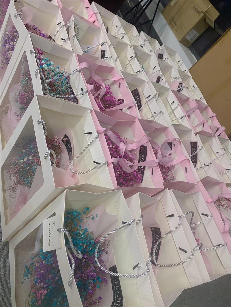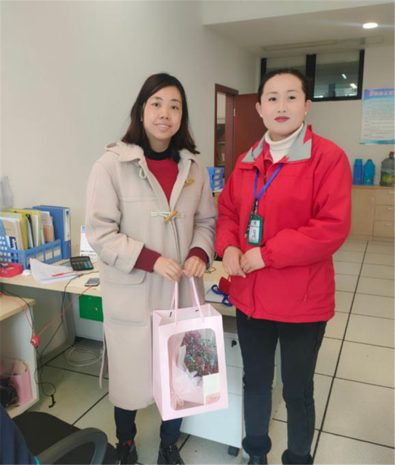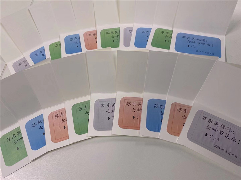 为了这次活动的顺利展开前期做了充分的准备,制作了详细的活动方案,并在每一张贺卡上贴上苏东吴的Logo以及祝福语,每一份都是代表着我们的一片心意。当产业公司以及院校的女性同胞们收到花时在惊喜之余还表达了喜爱及感谢。