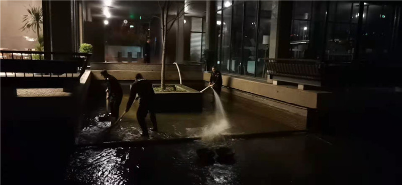 秩序维护上,合力做好物资搬运工作,从VIP到储藏间,从文创馆到VIP,小心翼翼搬运每一块金砖,且每块金砖重达几百斤;3月16日晚,冒雨连夜清洗景观水池。