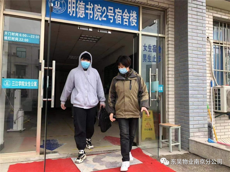 我司三江学院项目部宿管员协助同学搬运行李,快速送至5号楼隔离宿舍,学生搬至隔离宿舍后,宿管员告知学生不要出门并为学生提供必要的生活用具、帮学生打饭等力所能及的服务,随时关注学生后续状态。