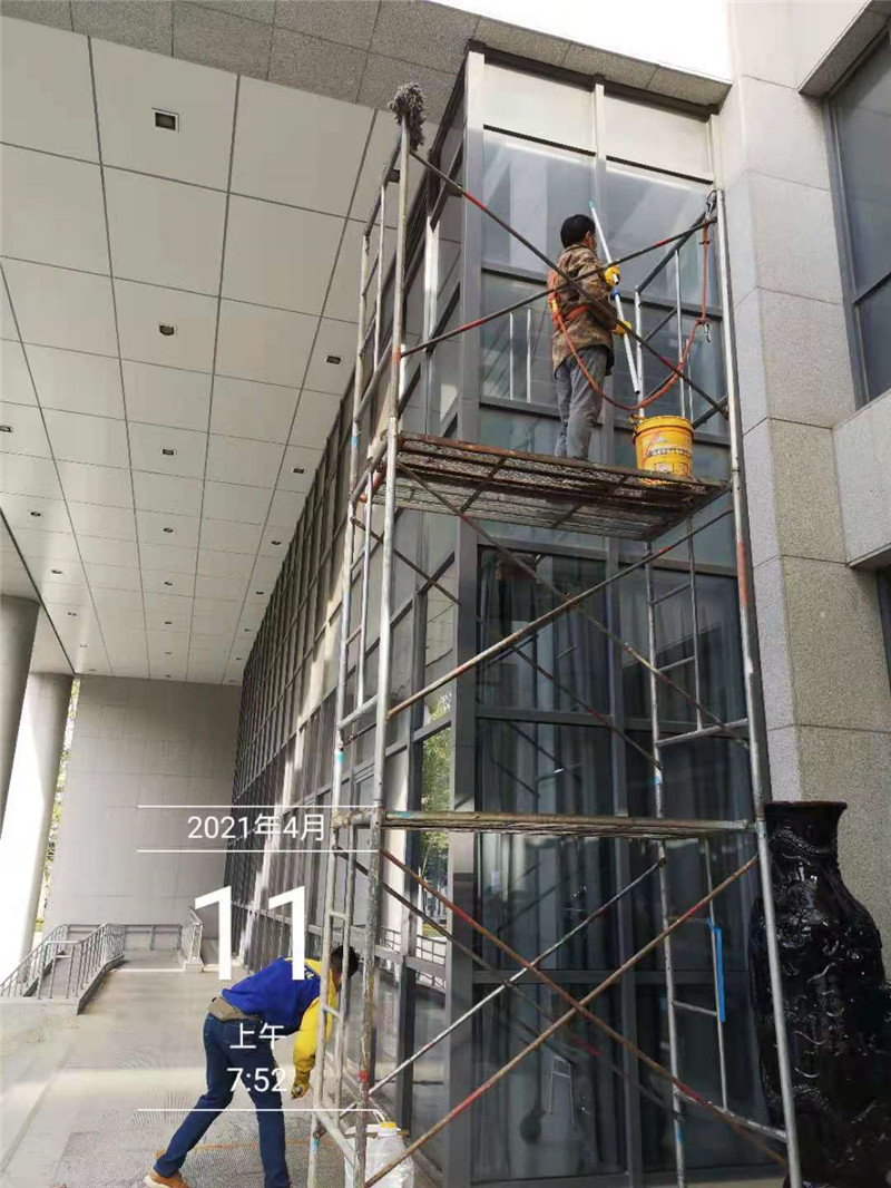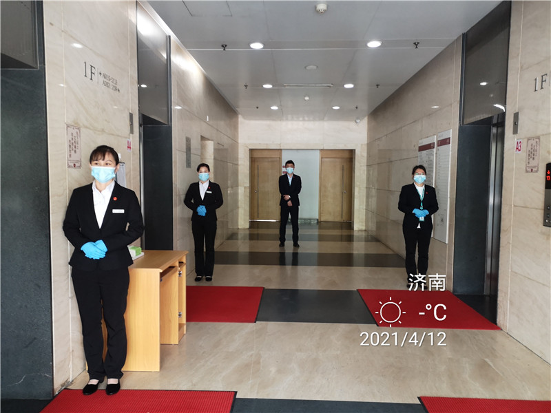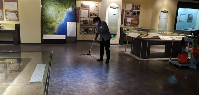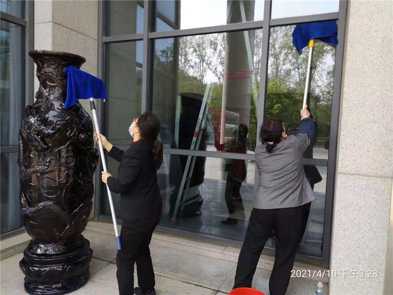 根据会议安排,对涉及楼宇楼层的走廊、卫生间、博物馆等进行全面细致的清理,重新购置消杀地垫、电梯轿厢地垫共计14块,放置防疫物资五件套12处、卫生间配备洗手液、肥皂、免洗消毒液、抽纸、湿巾、擦手纸5件套16处,并聘请专业人员对知新楼玻璃幕墙进行清洗。