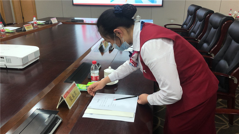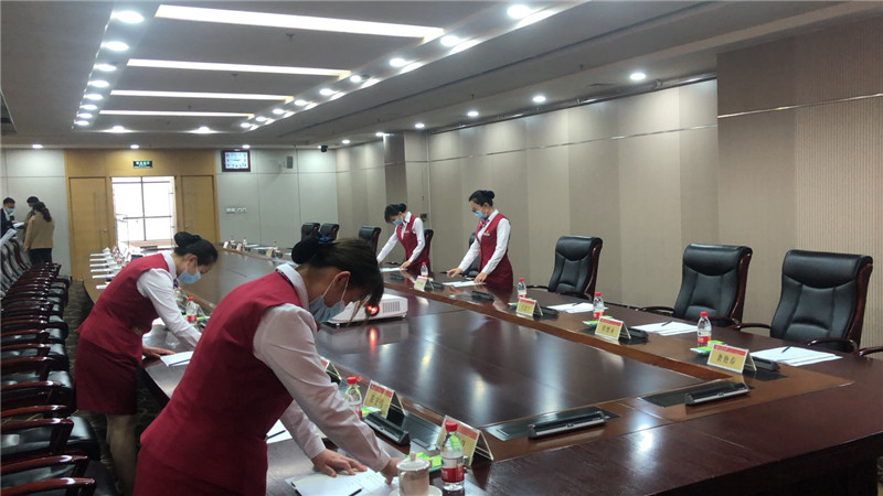 会议服务项目,对会服员服装进行统一更换,对涉及会议室进行多次清洁和检查,包含卫生细节、照明、桌椅高度,设备、茶具、纸巾等,确保本次活动的顺利进行。