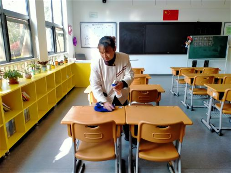 在全体后勤人员共同努力下,办公室和教室的卫生得到了全面清理消毒,学习环境焕然一新,为抗击新冠疫情、保护师生健康筑牢了防线。