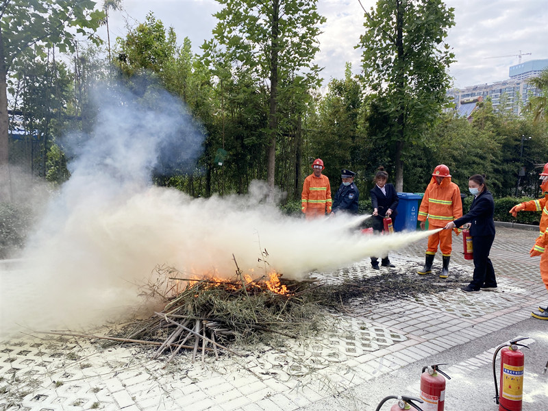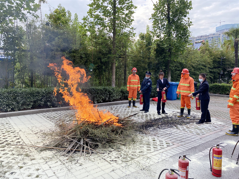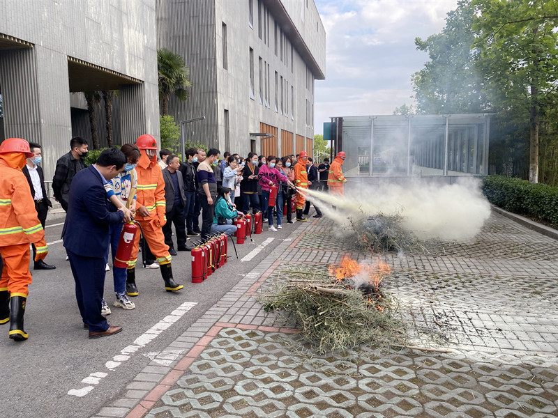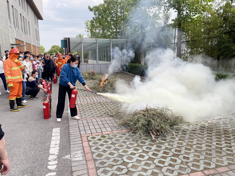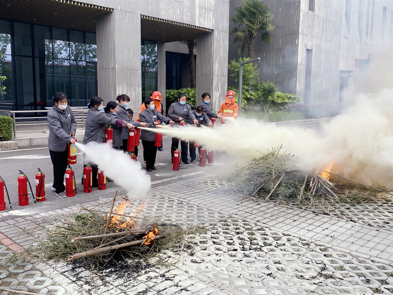 培训会结束后,全体人员来到西侧空地处进行消防灭火实操演练。演练场上,项目负责人及消防维保单位工作人员等通过现场演示给大家讲解了消防水带和灭火器的使用方法、灭火器的常规检查方法、现场灭火的安全注意事项。随后由业主及兼职消防员分组进行实操灭火演练,达到了人人会使用消防灭火器材的目的。