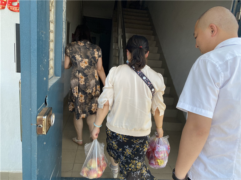 6月25日食堂条线员工杨品英在工作过程中不慎切到手指,随后去医院检查回家休养。食堂条线负责人带上慰问品前去看望员工。