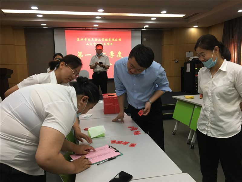 为给大家惊喜,本次生日会还准备了抽奖环节,共分为三等奖。由项目经理崔灿抽取一、二、三等奖,奖品为购物卡、毛巾礼盒及花露水,在这个炎炎夏日为大家送去一些清凉。