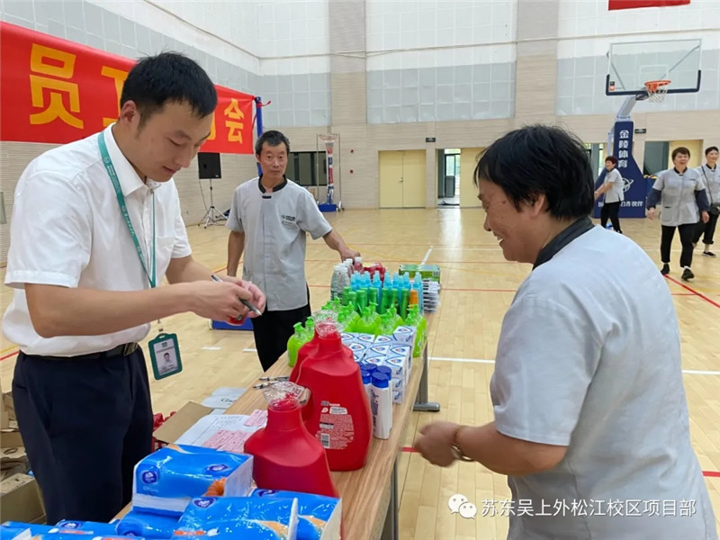 为了提升员工的幸福感,增强员工的归属感,让每位员工切实感受到东吴物业大家庭的温暖。上海外国语大学松江校区项目部于2021年6月26日上午九点举办上半年度员工生日会。本次生日会共有3个环节,分别为管理人员送祝福、自取生日蛋糕、玩游戏领取奖品。