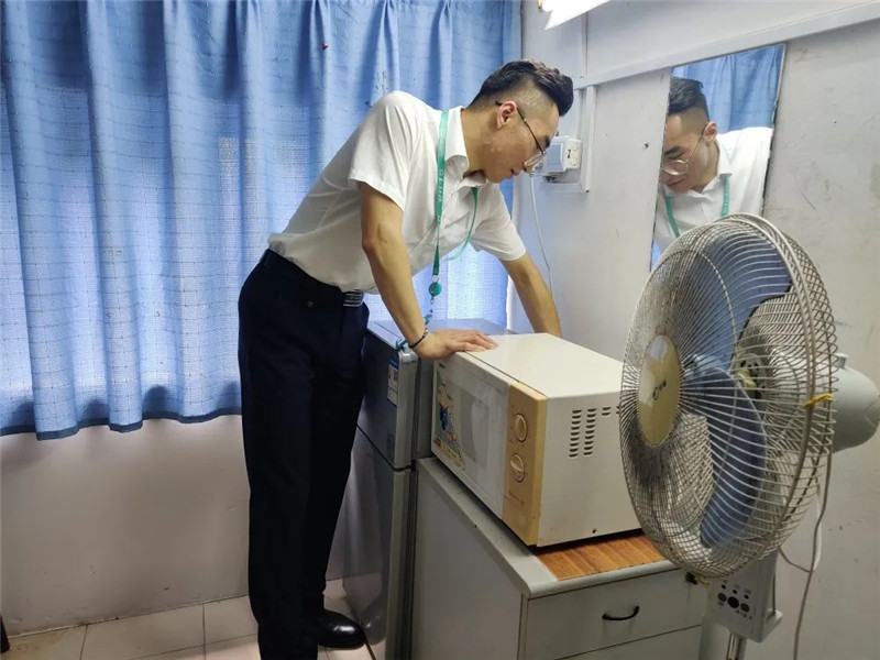 会后,由项目经理带队,管理人员对教学区重点设施设备房、楼层配电间、特种设备、员工休息间、项目仓库、电动车充电处等开展了节前专项安全检查工作