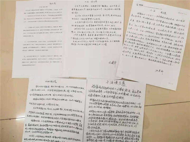 19日当天,在职员工于会议室集合,朗诵自己阅读《干法》后的心得体会,并相互交流学习;排班轮休的员工,也将自己写好的读后感交来,供同事们分享。每一个员工都结合了自己在工作中的经历,分析了平日里的得与失,彼此都获得了更加深入的感悟。