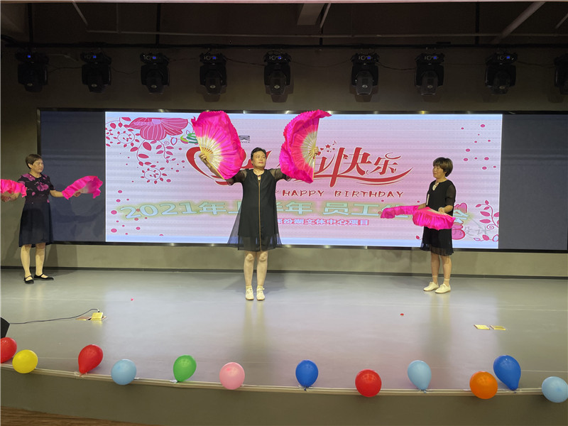 首先,项目经理刘晓刚为大家送上诚挚的祝福和对未来的期盼,之后进行合力吹气球、抢椅子等小游戏,将生日会的气氛逐渐带热。为了调动员工的参与度,我们的工程师傅率先为大家献上一首《天路》,高昂的声音带来了大家的欢呼声。随后,保洁阿姨们也不甘示弱,为大家倾情演绎极具本地特色的芦墟山歌之舞,现场气氛逐渐走向了高潮。最后抽奖环节,所有游戏的获胜队伍及上台展示才艺的员工均有机会获得我们准备的小礼品。