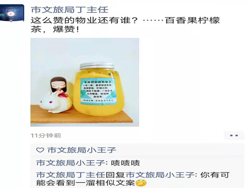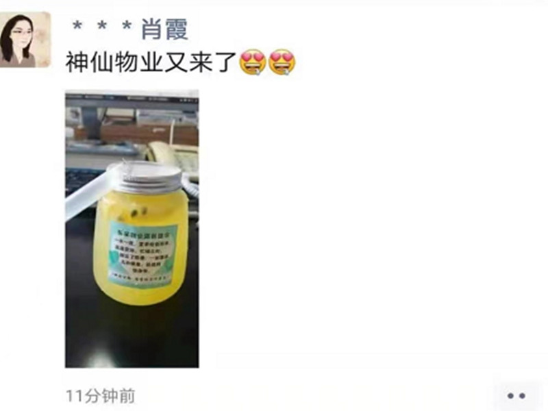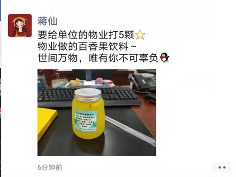 我们给业主递上一杯清凉可口的饮料。“您好,这是我们自己做的,请尝一尝,希望在炎炎夏日能带您一丝清凉和甜蜜”暖心的话语为在高温工作中的业主们带来了清凉的惊喜。业主们纷纷接过并对我们表达了谢意说“神仙物业呀”“这么赞的物业还有谁”。