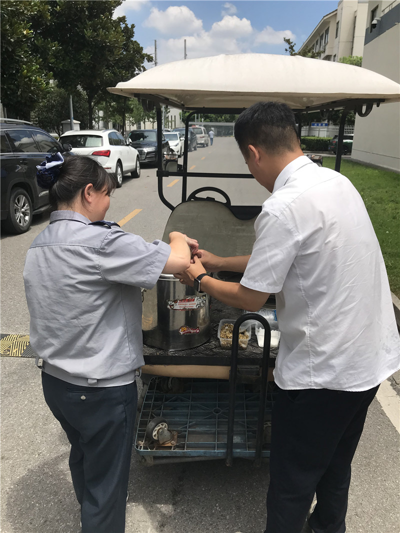 在送去绿豆汤的同时也叮嘱他们在保障工作的同时也要做好自己的防护工作,本次"送清凉"活动,持续了一个星期,同时今后将开展更多类似的活动,将关爱员工的行动建成长效机制,鼓励大家为业主和客户提供更优质服务的同时,也进一步增强团队的凝聚力。