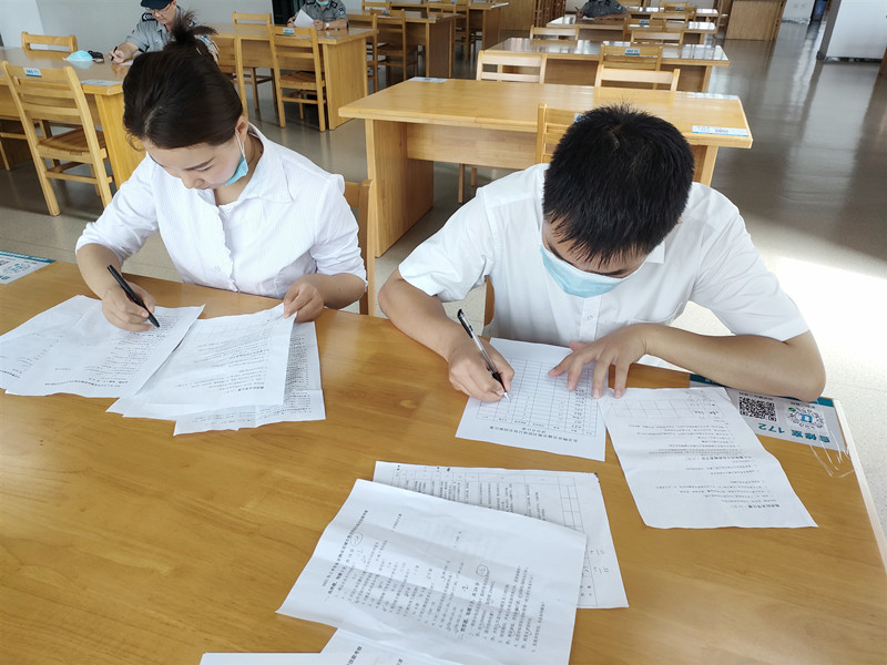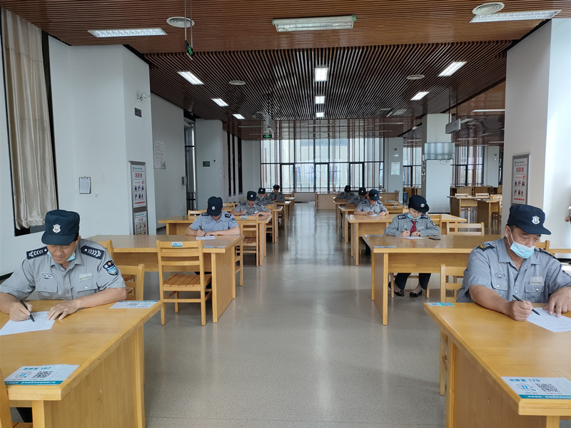 最后是理论知识竞赛,重点考查内容包括应知理论、安全巡查内容、疫情防控知识、防火防暴处置流程、进出场馆管理制度、场馆的应急处置流程闭卷考试。侧重考察保安人员对基本职责、常见突发应急处理及场馆安全管理等知识的知晓程度。大家认真答卷,飞笔疾书等。