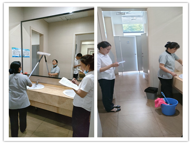 在比赛中,保洁阿姨们都努力地表现自己的技能水平,展现自己的工作状况,竞争相当激烈。在评比过程中,管理员认真检查每个细节,对参赛选手的应知应会、仪容仪表、保洁车及所打扫的卫生间及玻璃清洁进行分项打分,经过两个多小时的比赛及评选,最终二楼综合区杨玉敏第一名、三楼办公区程树红第二名、三楼自修区徐光勇第三名。