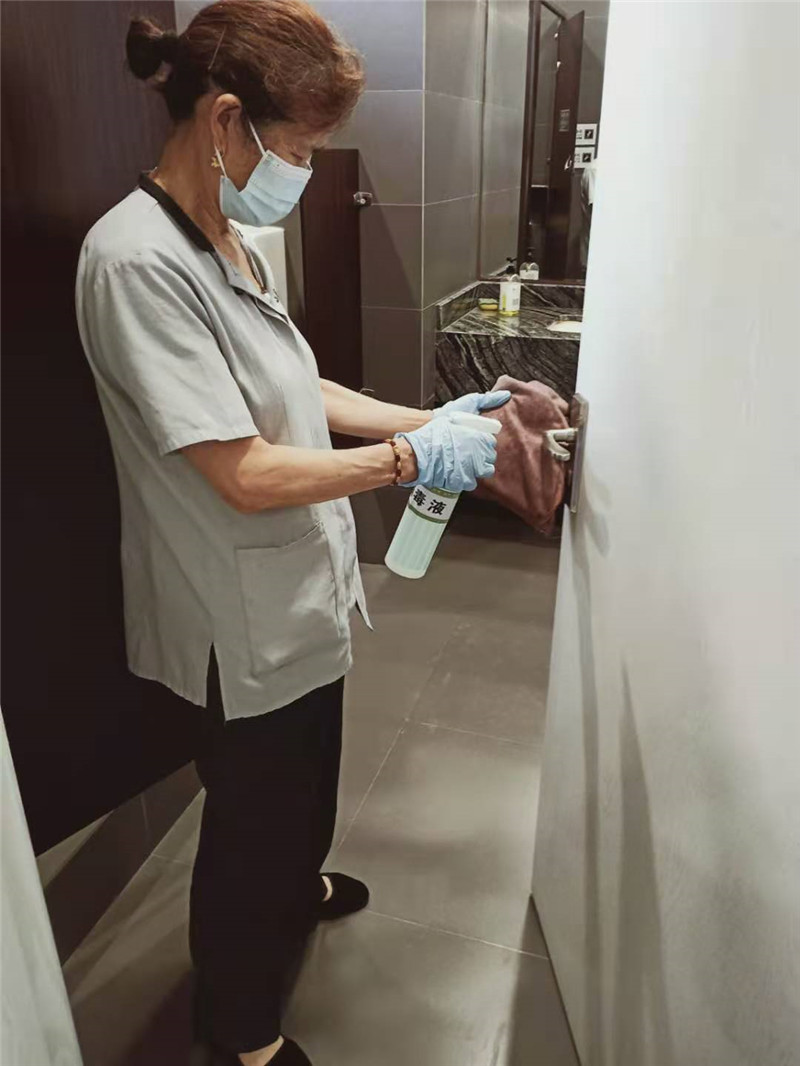 项目上的保洁阿姨们,每日坚守岗位,丝毫不放松,除了做好自身的防护,并每日测量体温,检查苏康码、行程码外,同时对馆内各处公共区域每日做到至少早中晚三次消毒工作,对卫生间、电梯、垃圾箱等重点部位更是增加消毒频率,每次清洁时都做到顺手消毒。在岗在位期间戴好口罩,勤洗手勤消毒,保障博物馆内的卫生安全。