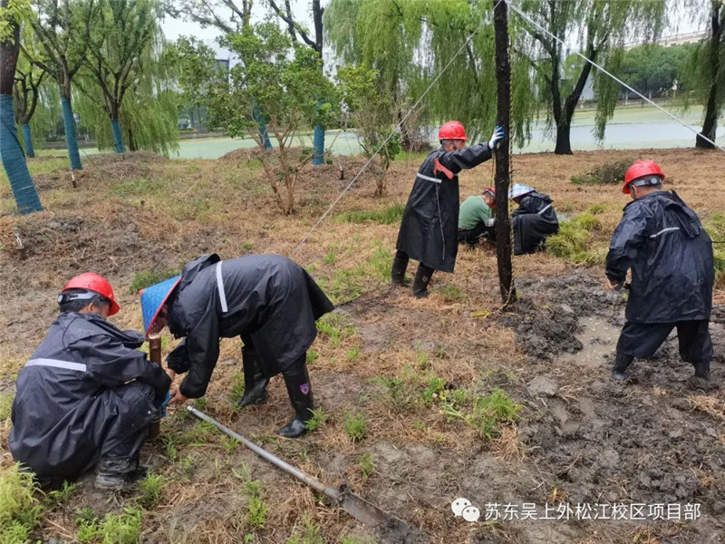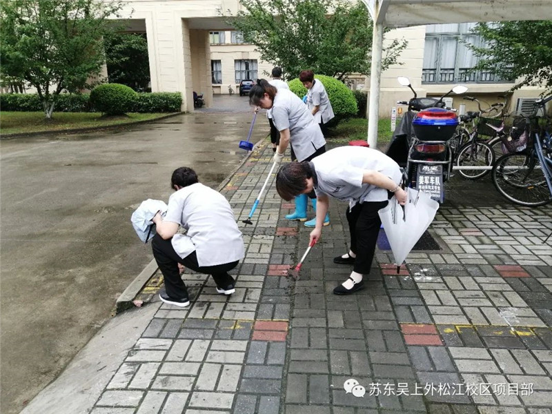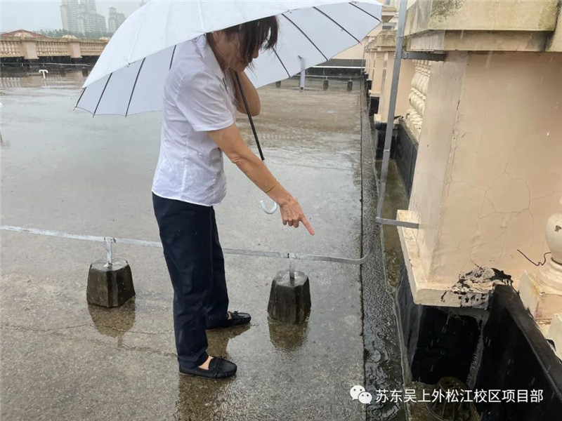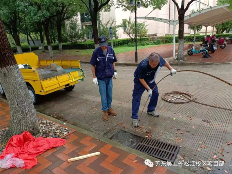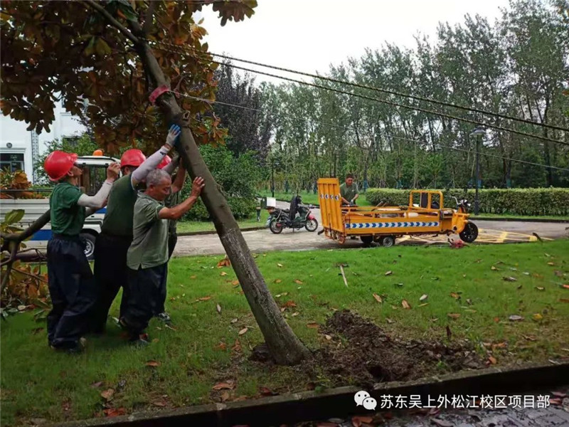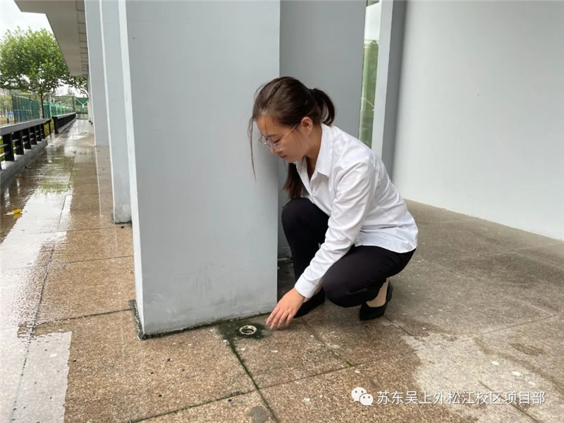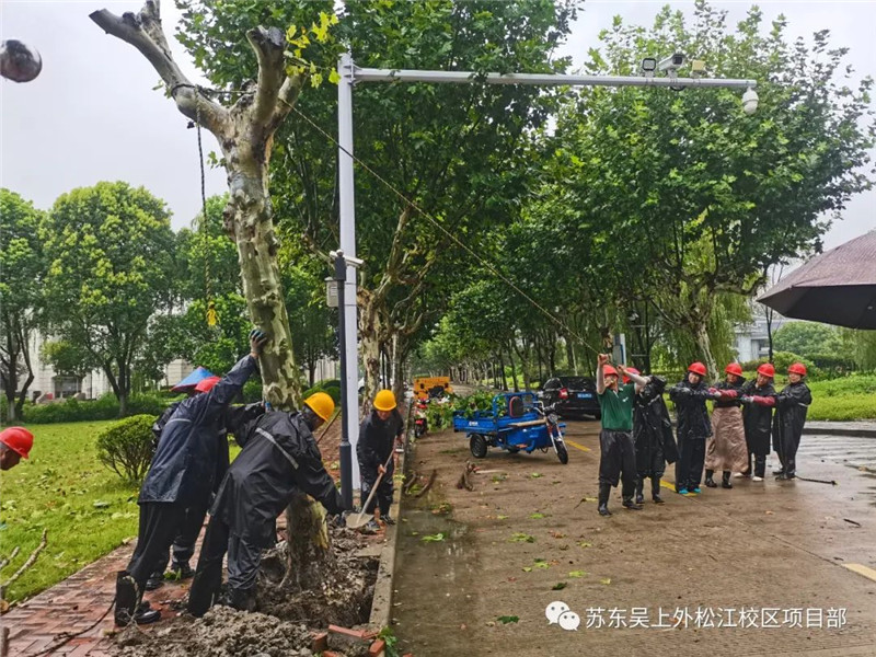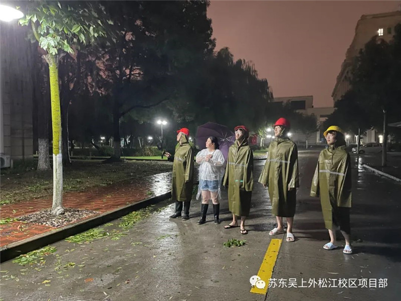 根据后勤管理处下发的《关于做好第6号台风“烟花”防御工作的通知》要求,项目部及时部署,安排24小时值班人员,密切关注台风“烟花”行动轨迹,对室外绿植、楼宇门窗、楼顶平台、电路设施设备、学校常积水区域进行重点排查,确保无人员生命财产安全,最大限度减少灾害损失。