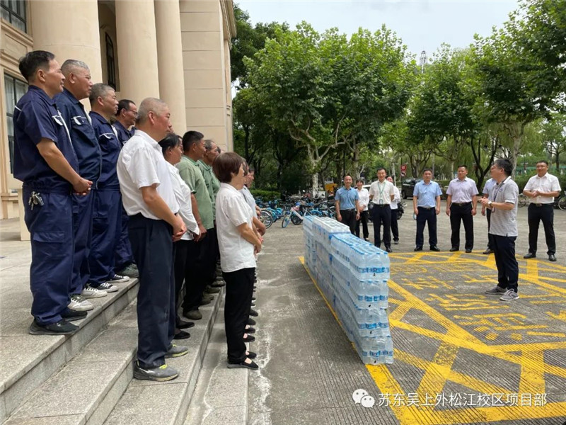为鼓励、激发员工的工作热情,充分展示公司的企业文化,后勤管理处与东吴物业共同开展夏日送清凉慰问活动。7月16日上午,后勤管理处孙俭处长带领各部门负责人到松江校区慰问暑期值班员工,随后,孙处与东吴物业副总经理冯玉忠共同为员工发放慰问物品。