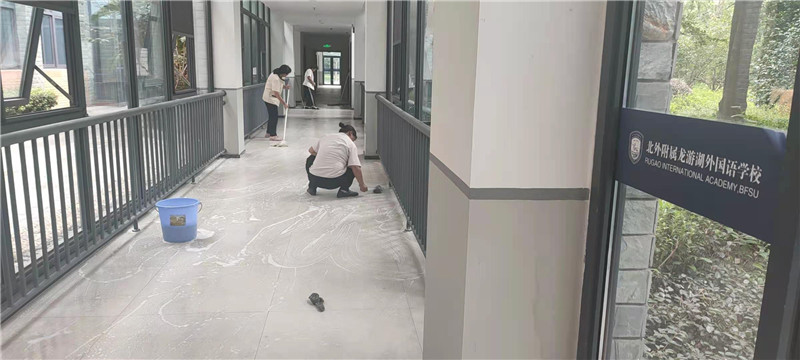 安排保洁针对地面、墙壁、连廊、厕所、玻璃、床铺、桌椅等处进行全面清理。做到分工明确、责任到人,确保如期完成开荒保洁任务。