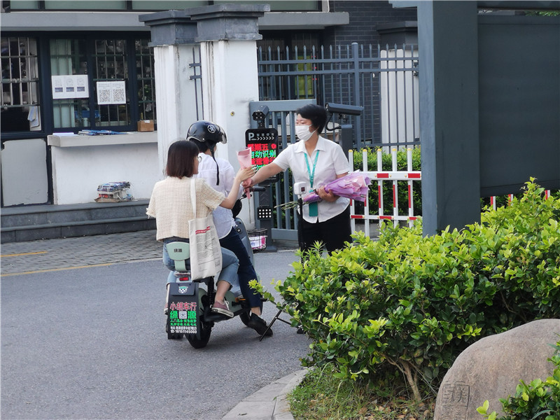 觅渡中学项目,一束鲜花,一颗奶糖,一句老师节日快乐。觅渡中学葛校长,感谢物业服务,学生护导结束后,为保安人员送上鲜花,并合影留恋。