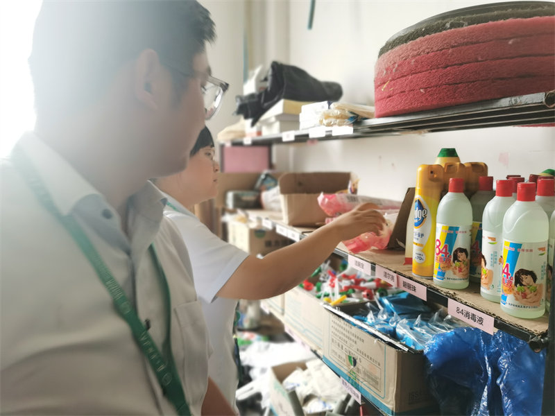 9月29日,检查组先后检查了常州轻工职业技术学院、常州机电职业技术学院、常州大学武进校区、江苏理工学院等项目。检查组首先检查了项目《防火巡查记录》、《培训记录》、《员工血压测量记录》等台账,随后查看了项目仓库尤其是保洁药水的存放、防疫物资的储备和项目在用设备的安全管理。