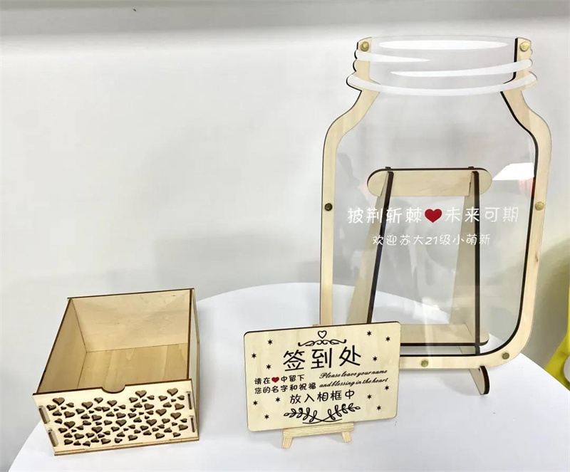 新生在办理完入住手续后可到创意签到处进行签到,让入住的新生感受到“家”的归属感。分为:许愿瓶签到和创意指纹签到两种。