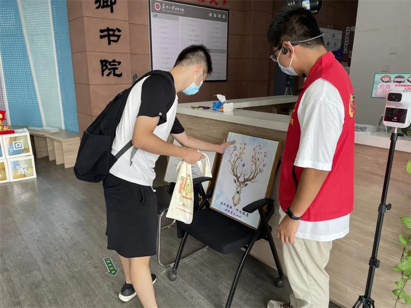 为了给学生提供更好的帮助,方便新生辨识工作人员。我们为值班员提供带有“欢迎回家” “办理入住请找我”等字样的发箍,天赐庄校区本部更是为值班员提供了可发光的发箍,即使夜间也可以为报道的学生提供服务。