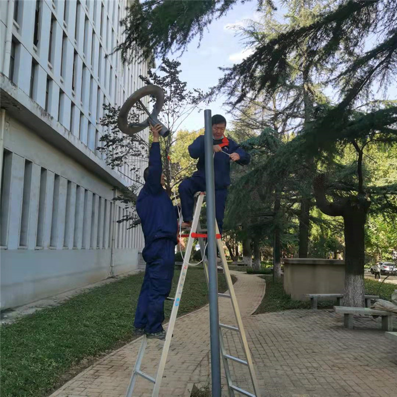 工程条线组织清理校园内树上残留铁丝绑带、检修路灯、更换地砖、维修天桥防腐木、铺设电缆、临时安装配电柜、更换照明灯;自12日起每天20余人在体育馆内外配电箱、变电室及中心变值班,全力做好供电保障工作。