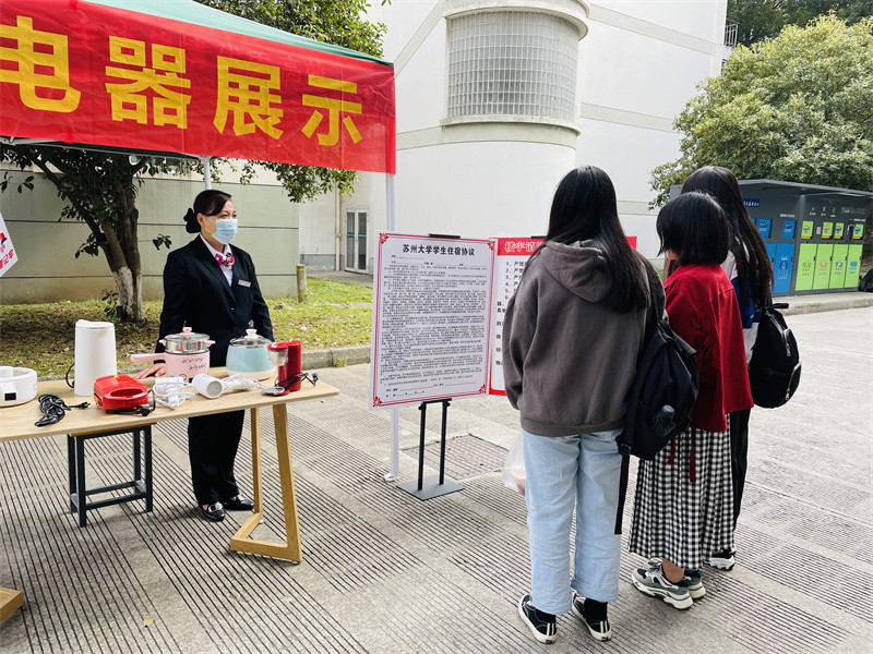 为进一步贯彻落实“预防为主、防消结合”的方针理念,增强学生宿舍安全文明意识,提高学生应急事件处理能力,普及宿舍安全文明知识,克服学生麻痹思想现象。苏州大学国际培训学院与东吴物业宿管中心北区宿舍物业管理服务部于10月27日-29日共同举办“同心圆”宿舍安全文明主题宣传活动。