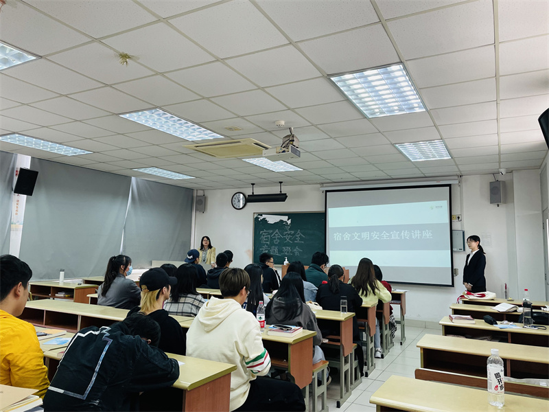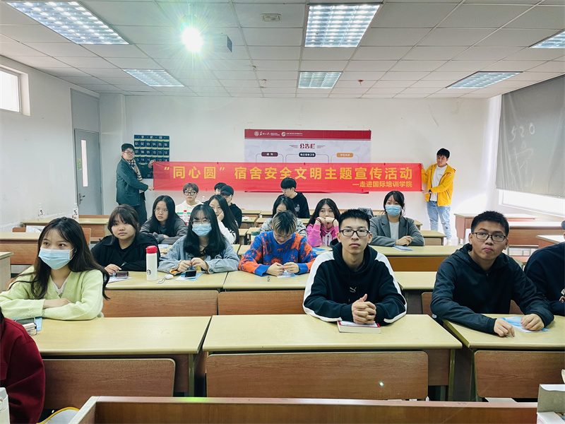 10月29日,国际培训学院各班级联合宿管工作人员,召开安全教育主题班会。班会从校园安全与消防、火灾逃生方法以及灭火器的使用方法三方面,向同学们强调消防安全的重要性,提高学生消防应急技能。