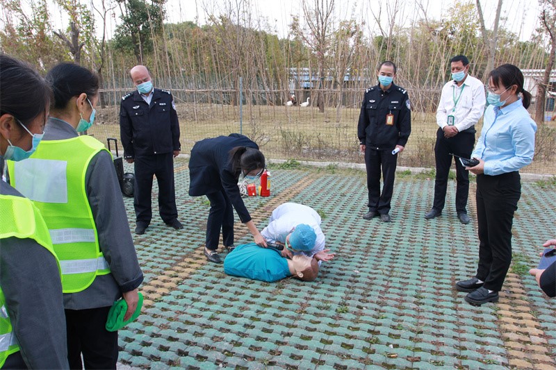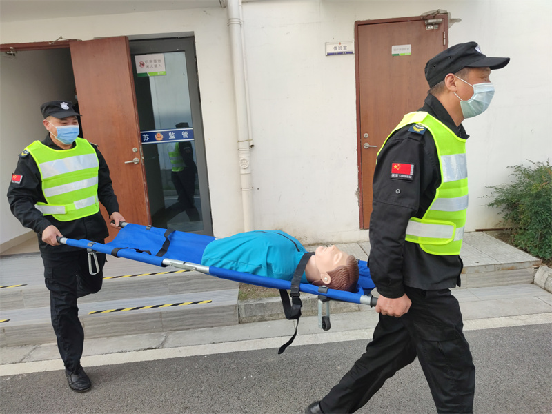 中午12:30参演人员在后勤楼2楼大厅集合,领取反光背心和毛巾。13时由主持人丁奇讲述演习目的、演习流程,随后拘留所所长单勇做重要指示并宣布演习开始。本次演习共分为指挥、疏散、灭火、警戒、救援5个小组。随着警报声响起,所有人员在疏散组组长韩惠的指引下,捂住口鼻、弯腰、一路小跑撤离至疏散点并清点人数;疏散组指挥被困人员向疏散点撤离;救援组秦医生对伤员进行心肺复苏;灭火组组长范自强讲解灭火器、防毒面具、逃生绳的使用方法并进行灭火训练,整个演习有条不紊的进行......
