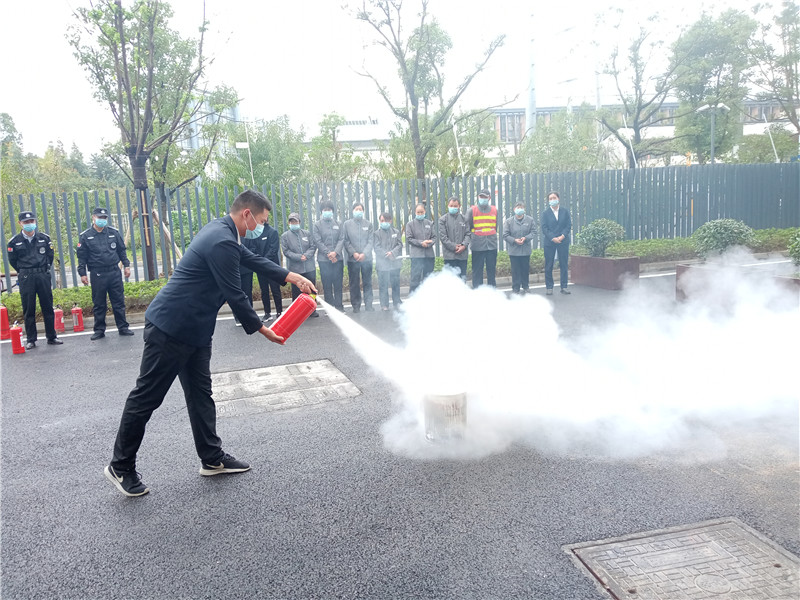 演练开始,由我们物业陈经理给大家进行了常规灭火器的详细介绍,并对不同的灭火器使用技巧和灭火方法进行了演示,随后我们每位员工都亲身上阵进行了灭火。