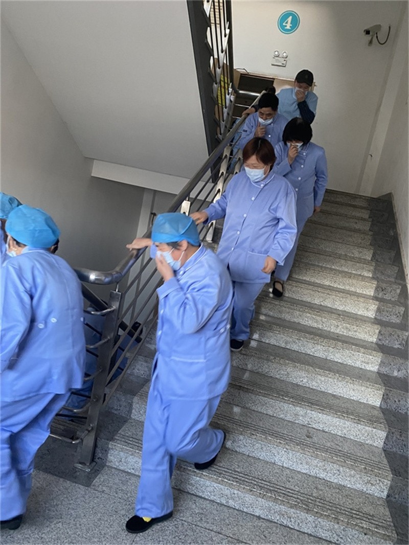 项目部组织全体员工在住院部四楼中厅集合,宣讲了关于消防的相关知识,学会判断火灾火势,学会正确、合理的躲避火场、烟雾,并有序高效逃离到开阔地带,在撤离到安全地带后,又该怎样去拨打119电话,怎么描述才能够更全面、具体的配合消防人员的灭火工作。在学习了相关知识后,全体工作人员在管理人员的指引下,戴好口罩捂住口鼻,有序地从安全通道标识的楼梯撤离到一楼的开阔地带,并模拟了拨打火警电话后的描述步骤。