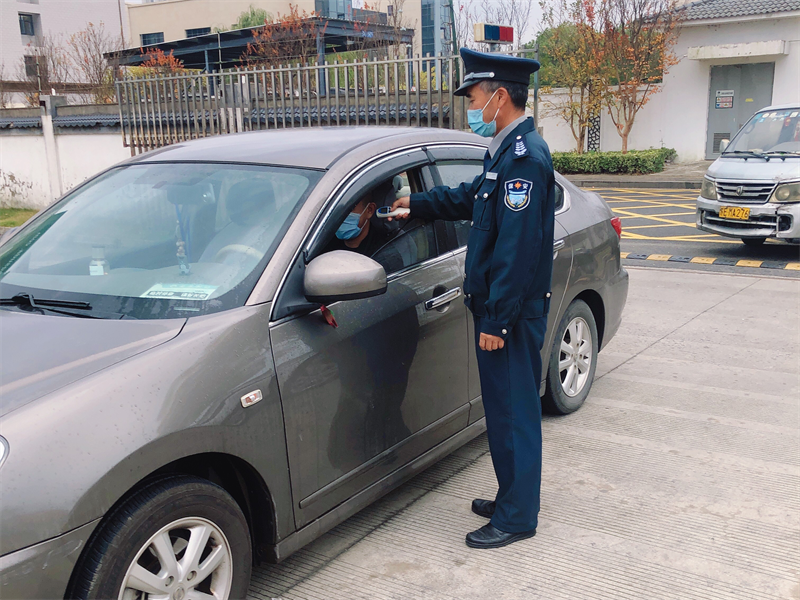 第二,我们的保安人员在门岗执勤时防控也从未松懈: