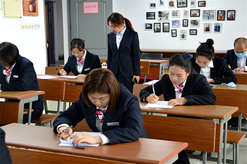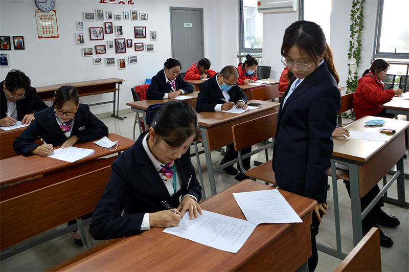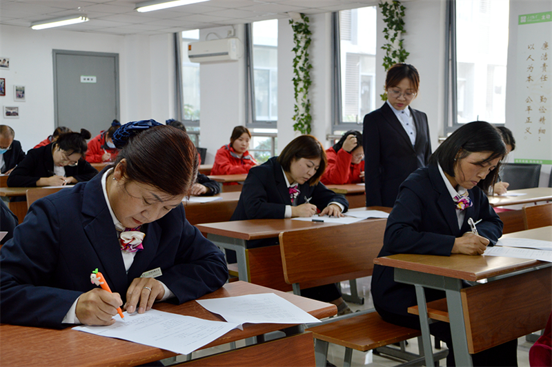 理论测试内容涵盖了集团基本法、ISO体系标准、作业指导书、工程条线、保洁条线、日常案例分析、应急预案措施处理以及安全品质检查标准等内容,旨在考察楼长的综合素质,全面提升楼长的服务质量。为保证考核的公平公正,监考官认真维护考场秩序,确保考场安静,各位楼长认真答题,奋笔疾书,无交头接耳等作弊现象。
