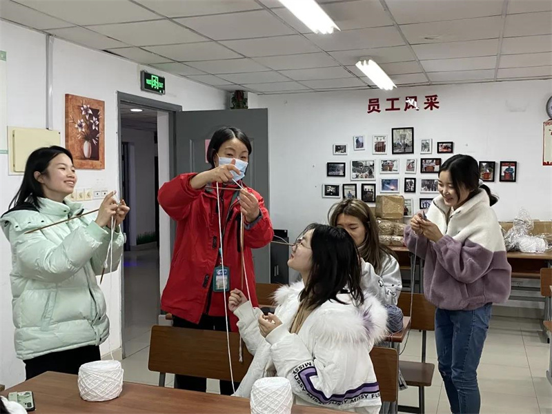 2021年11月25日14:00,天赐庄东校区开展了宿舍文化节劳动课堂——内务整理以及手工编织的活动,由宿管阿姨担任任课教师,分享相关技巧。