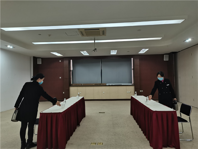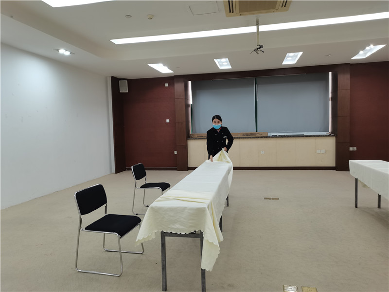 最后开展的是客服技能竞赛,从最有技巧的铺设桌布和桌裙,到后来的会务服务,通过模拟会务情境进行茶水斟倒以及手势指引。