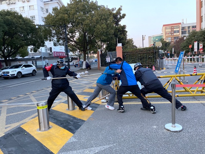 保安是学校门面,也是进入校园的第一关卡。为了应对校庆期间突发情况,项目部提前制定了突发事件应急预案,并组织人员现场进行模拟,确保此次校庆活动能够安全有序地进行。