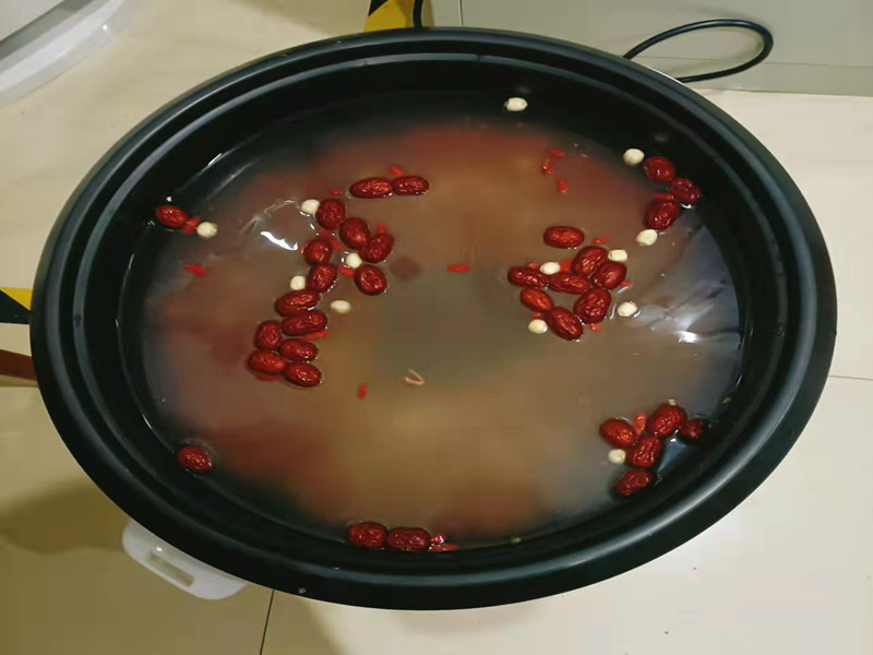 一大早,图书馆项目部在刘主管带领下做前期的准备工作,洗米、洗红枣、洗花生粒……