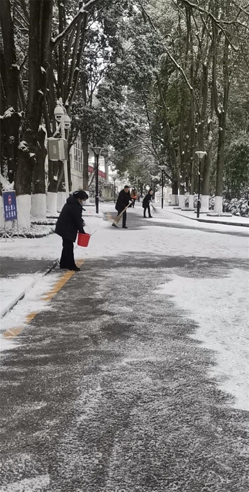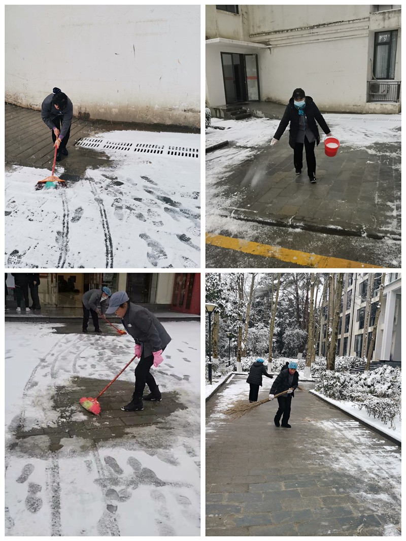 22日正值贵阳市委党校贵安社区干部培训班第二期入学开班。为保障校区人员出行安全及交通安全,在面临雪凝灾害的同时,各部门根据应急预案积极投身于除雪抗凝,在后勤管理处部分同志及杨经理的带领下大家众志成城、勠力同行,吹响了铲冰除雪集结号,以实际行动确保道路畅通,为这寒冷的冬日点燃了一把火,融出了一条安全之道。