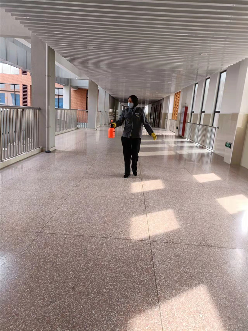 2022年2月13日,原本是新学期开学的日子,所有的学生都回到学校分发着新学期的书本,但由于疫情原因当天凌晨3点我们收到了学校业主的紧急通知学生全部放假离校,开始线上学习,在接到这一通知后,项目办公室第一时间联系条线,有序保障学生离校事宜。在此期间在做好自身防护的同时,我们也积极的做好学生复课前的准备工作,我们制定了详尽的疫情登记制度以及严格的每日消杀计划,消杀区域覆盖全校,同时针对校园门口、校园公共卫区域、电梯、各个教学楼廊道等重点区域加大消杀力度。