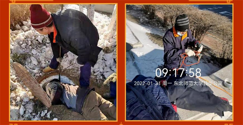 在安全巡查方面,根据维修巡查制度,对设施、设备进行排查,及时排除隐患及修复损坏设施。在计划维修方面,项目部根据寒期工作计划,利用假期,修复平时不方便维修的工作,做好服务保障工作。在突发抢修方面,计算机学院的消防管道爆裂,维修人员第一时间赶到现场抢修,疏通下水主管道,恢复供水;除夕当天,一食堂消防管道爆裂,因管道空间狭窄,他们不顾寒冷脱掉棉衣,穿着单衣抢修以增加作业空间,历经2小时奋战,管道修复,此时他们已冻的瑟瑟发抖。