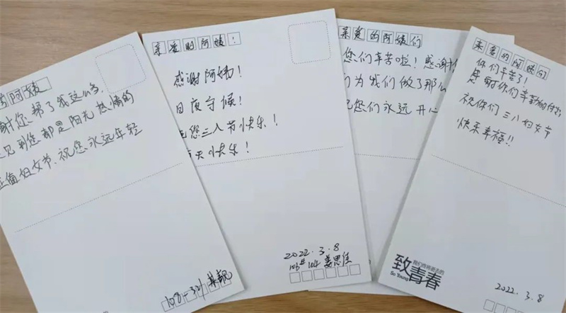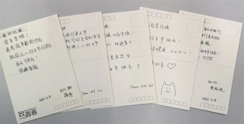 又是一年三月季,祝贺宿管阿姨们女神节快乐!祝福之余,让我们一同看看留宿生们是如何对阿姨们表达爱意的吧。
