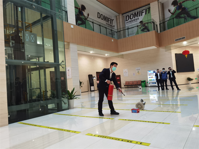 一些员工就因为抛掷的方式不规范而操作失败,经过多次练习也能熟练掌握。最后由项目经理对此次培训做出总结,强调员工对消防安全要引起重视,在工作中需不断强化自身应急处理的能力。至此培训顺利完成。