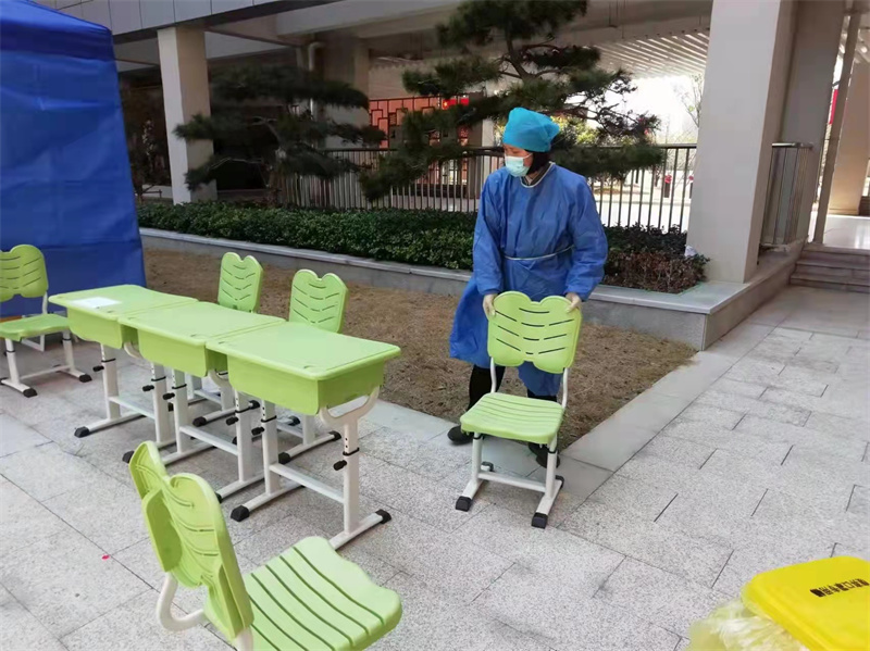 3月初,我们在疫情反弹期间严格执行每日消杀制度,做好日常防疫消杀工作的同时也时刻为复学做好准备。从防疫物资接收、整理盘点、物资分发,防疫隔离点和核酸检测点的布置,包括防疫雨棚的搭建,各点位核酸检测所用物资的放置,项目上下竭尽全力做好每一项现场保障工作。在做好个人防护的同时,按照甲方要求严格进行门岗管控工作,确保了3月12日全校师生核酸检测活动的顺利进行。从学生入校体温测量、一米间隔点的设置、现场秩序的维护工作,检测后现场的恢复及消杀工作,在大家共同努力下圆满完成了全校核酸检测,只待开学。