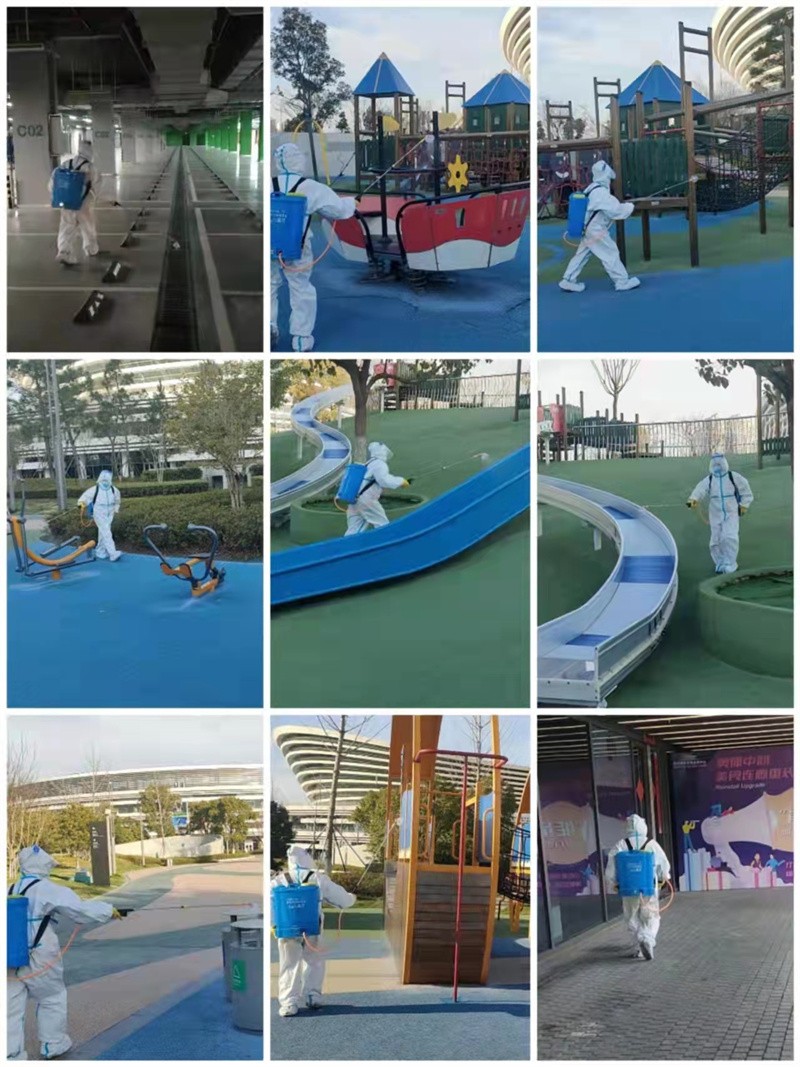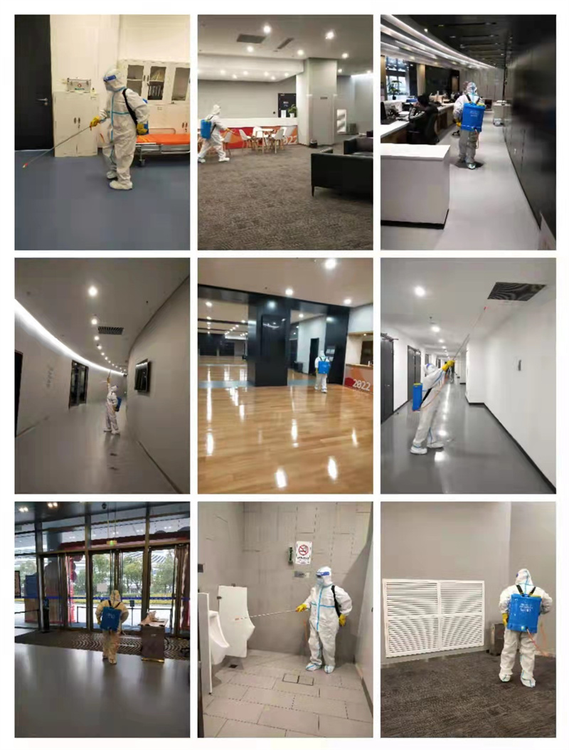 1、自疫情发酵开始,项目保洁部迅速行动,随即启动应急预案,组织防疫控制专项工作小组,分成四个消毒小队投入到防疫工作中,凌晨五点多全副武装,身背消毒水对奥体中心全区域覆盖式消毒,这一刻他们是一群最美的“逆行者”。