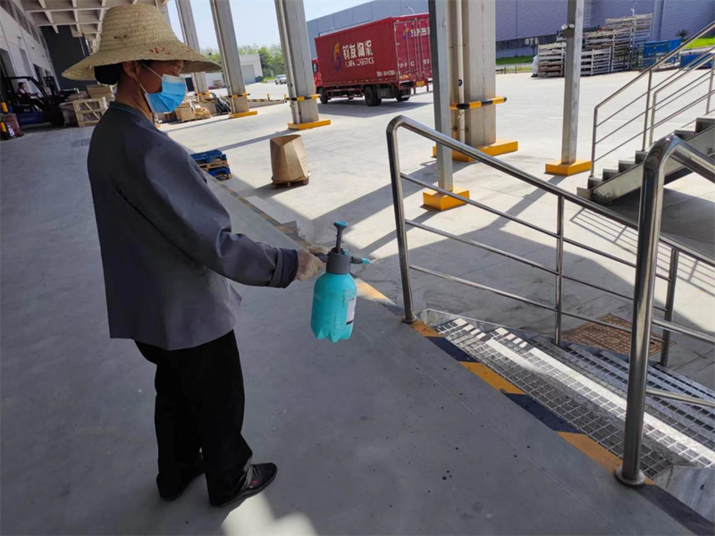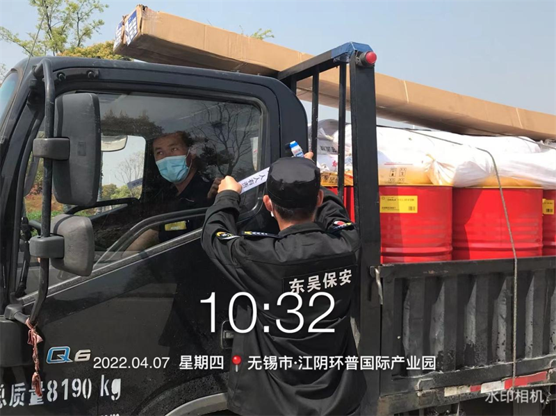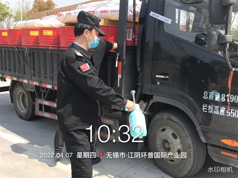为落实上海等重点地区来往货运车辆闭环管理,进入园区的车辆需要消毒和加贴封条,确保中途不逗留,人员不下车,在规定时间内完成装卸货。