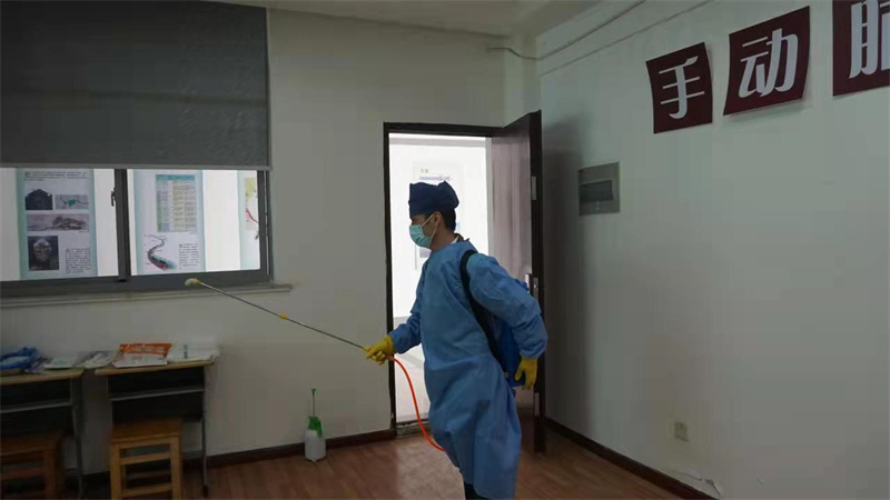 为切实做好学校新冠肺炎疫情防控工作,提高防控水平和应对能力,及时有效实施在各种情况下疫情发生的应急处理,最大程度减少新冠疫情对学校师健康和安全稳定造成的危害,4月11号日下午,学校开展了新冠肺炎病毒校园疫情应急演练。本次演练模拟开学第二周,在学校北门口晨检、高三(8)班晨午检、男生宿舍103晚检时,各发现有学生体温超37.3℃、干咳、腹泻。学校立即上报争取指导和支持,协调各相关部门实施积极有效的防控措施,快速转诊,迅速排查和确定密切接触人员并实施隔离观察,组织消毒,开展师生健康教育和心理辅导。
