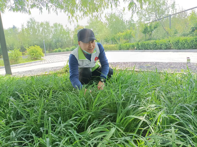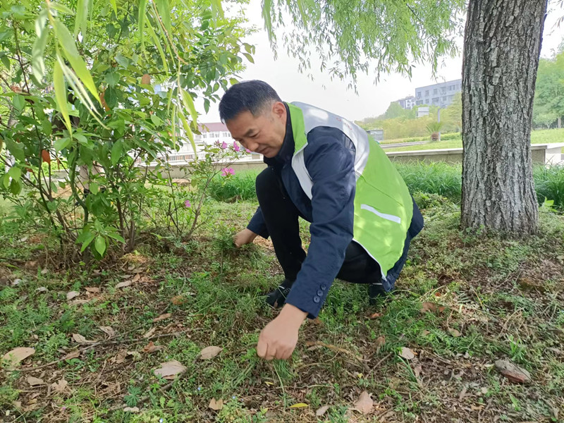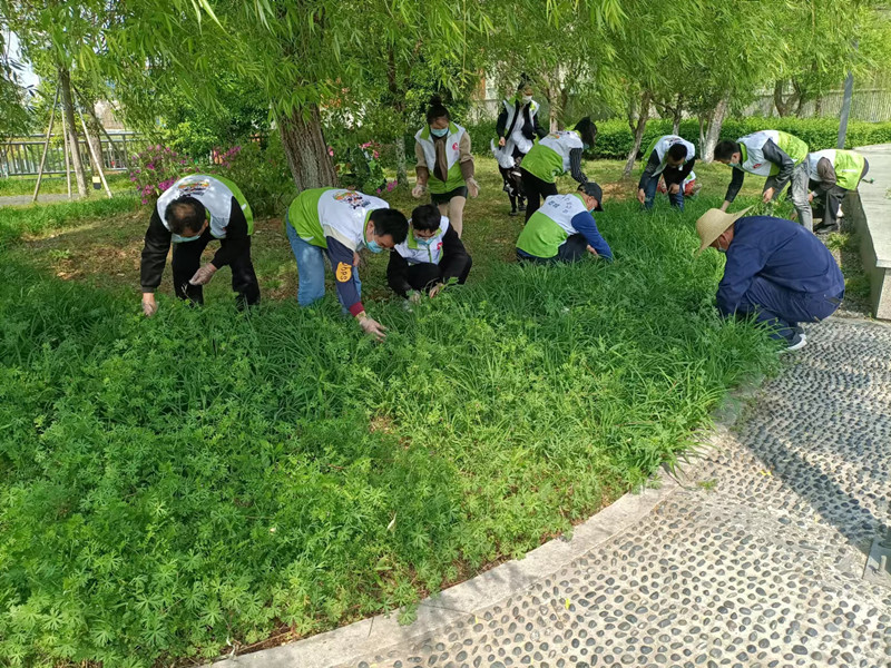 刘主管带队由市文旅局及是书画院领导组织科员对大楼南广场绿化内杂草进行全面清除工作。
