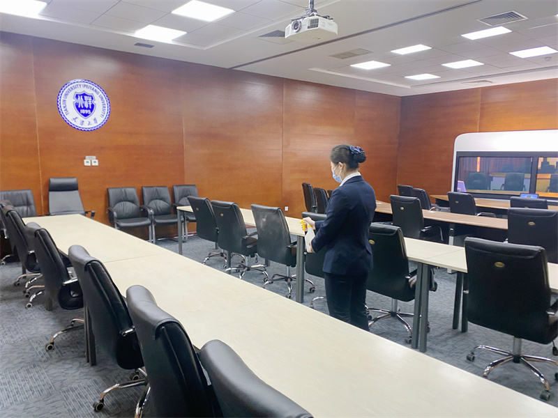 虽然封校期间在岗人数缩减,在岗员工承担的工作任务加重,但我们的服务标准没有缩水,在此特殊时期,我们以更高的标准、更严的要求完成清洁卫生、秩序维护、维修、宿舍管理、临时隔离观察点管理等各项工作。