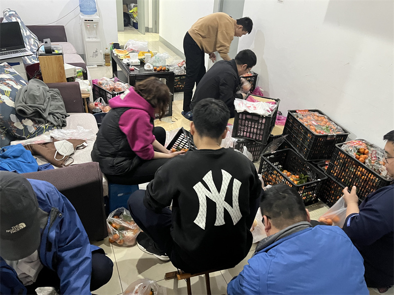 三、疫情防控 学校封闭管理至今已月余,从漫天飞雪到桃花满园,天津分公司各项目积极配合校方开展各类防疫工作。期间参与核酸检测布场及现场保障工作累计60余次,每场核酸检测人数高达13500-38000人,即便项目人员短缺,仍坚持抽调人手前往核酸检测现场参与志愿服务,检测完成后对体育场区域进行还原、消杀。 四、员工关怀 齐心抗疫,爱不缺席。面对突然严峻的疫情防控形势,面临居家或是奔赴工作岗位的选择,我们可敬可爱的“东吴人”毅然决定收拾行囊,加入这场无声的“战疫”中。为保障员工在校封闭工作期间的生活起居,学校后勤保障部为大家准备了被褥,安排了临时住所,还免费为员工提供可口的饭菜,使大家倍感温暖。此外天津分公司还组织项目陆续开展慰问活动,为员工发放时令水果,补充维生素,保持营养均衡,身体健康。