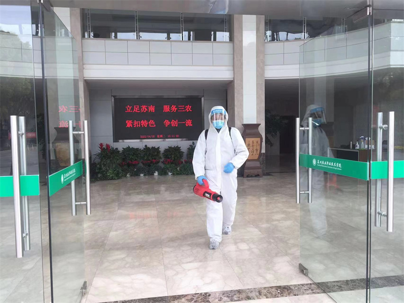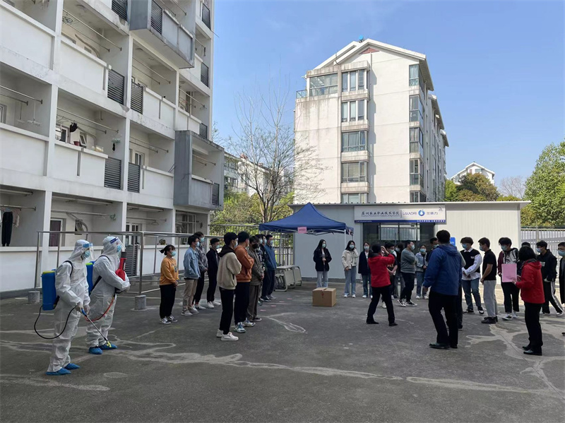在新冠疫情的冲击下,苏州这座城市经历着前所未有的考验,苏州农业职业技术学院响应江苏省疫情防控《关于设区市发生本土疫情期间强化高校校园封闭管理的通知》,2月9日起校园实行全封闭式管理,项目经理刘情情带领农校本部物业人员以校园为家,与教师、学生一起,坚守岗位,“疫”路同行。